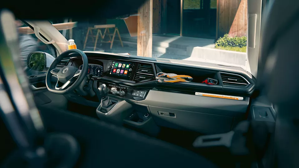 You can now experience digital progress up close which is standard in the Transporter 6.1 Crew Bus. The state-of-the-art Infotainment System offers many new functions, including telephone connectivity and WeConnect compatibility.